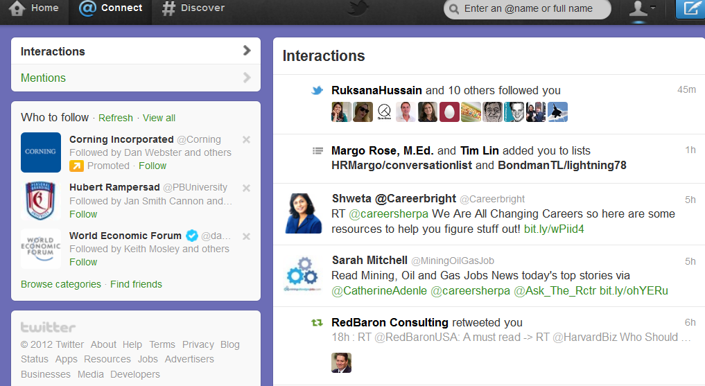 Sharing content on Twitter, allows firms to get instant feedback from their readers, and have their stories quickly reach new audiences. Image via Career Sherpa